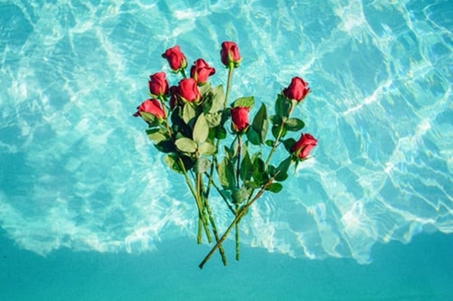 바다 위에 떠 있는 장미꽃 다발을 건지는 꿈